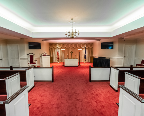 The newest of the Stuhr family chapels, this classic gray stucco building is located approximately one mile west of Bon Secours/St. Francis. This chapel is conveniently located to serve all the areas West Ashley, as well as all the barrier islands and locations south of I-526.